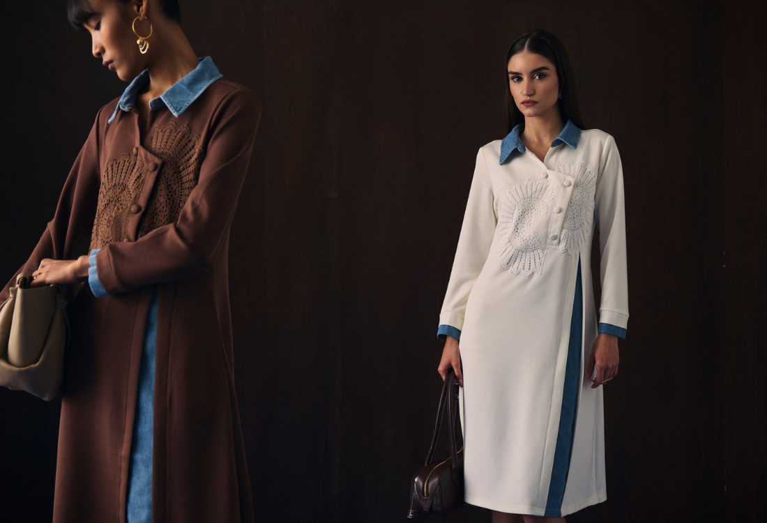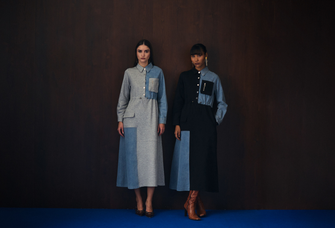 Aruni wishes to pair different denim fabric with different materials using different techniques to create range of products. Quality denim in beautiful shades of blue are sourced directly from Aruni’s Denim factory. Think easy to wear flared trousers pair with trendy tops, finely constructed jackets come with alluring details , loose drapes can be seen on gown saris , midi skirts , denim tunics , interesting dresses and much more.